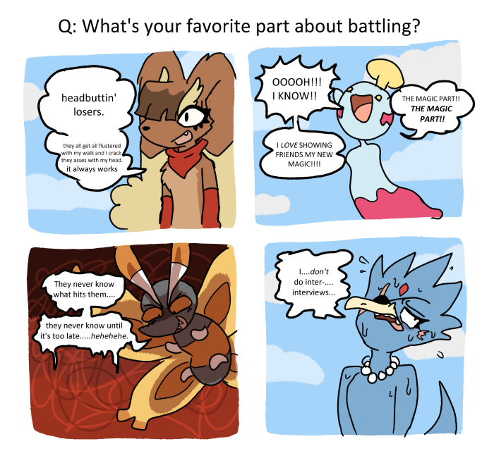 CONTENT WARNINGS: all NSFW is uncensored. there is art featuring the following themes: blood/gore, nudity, self-harm, suicide, diaper fetish, pee fetish, corporal punishment, human x pokemon, feral x feral, vomit, scat