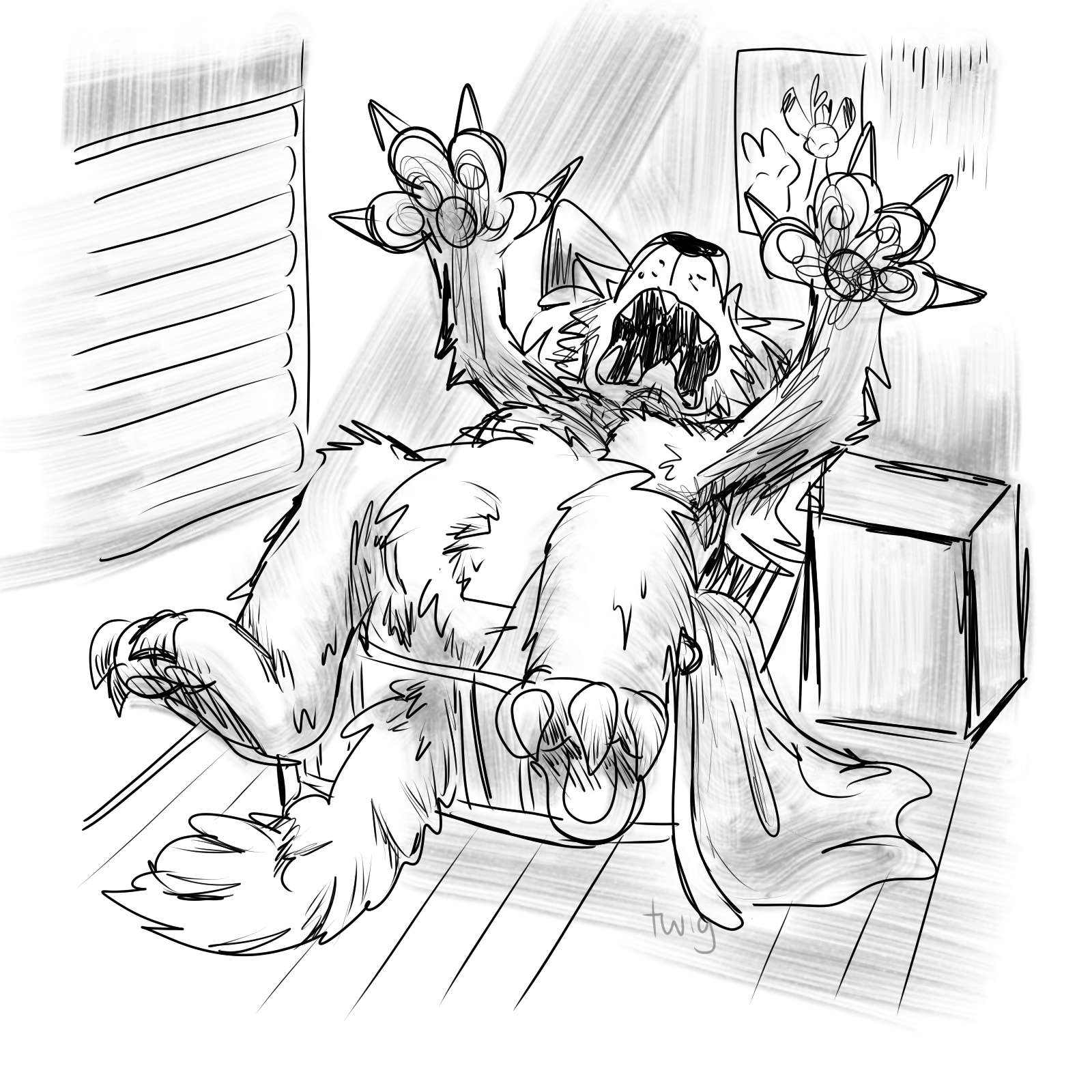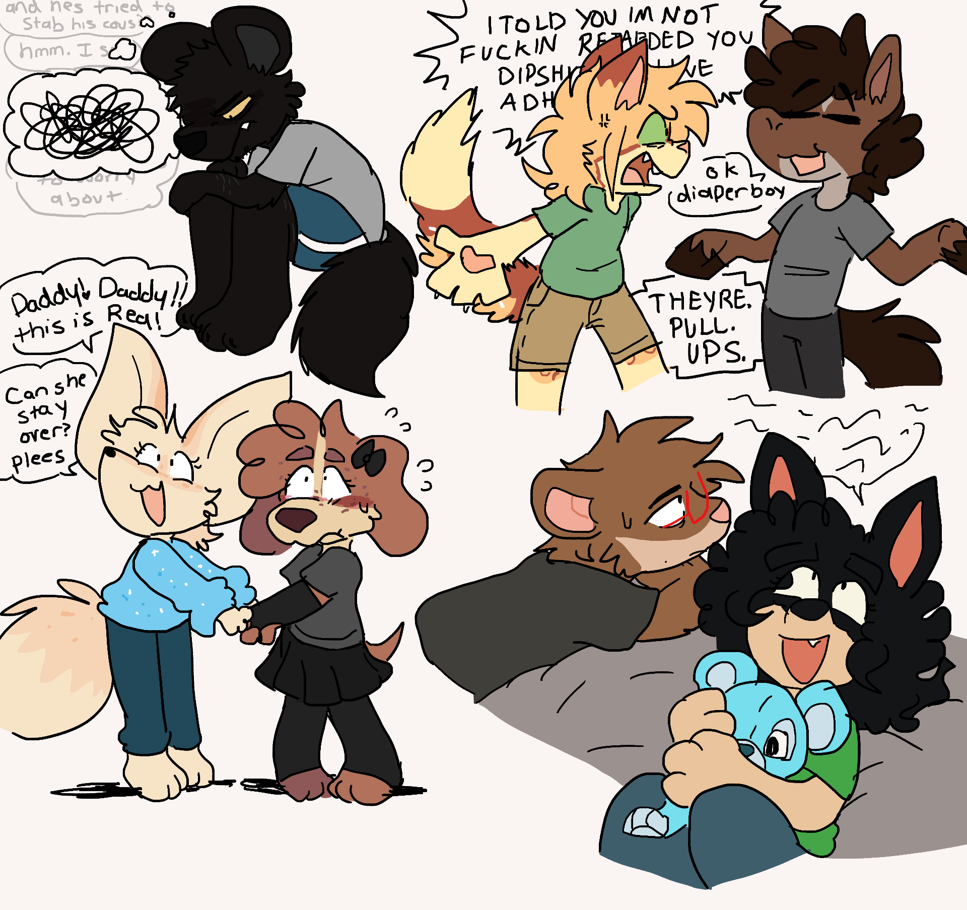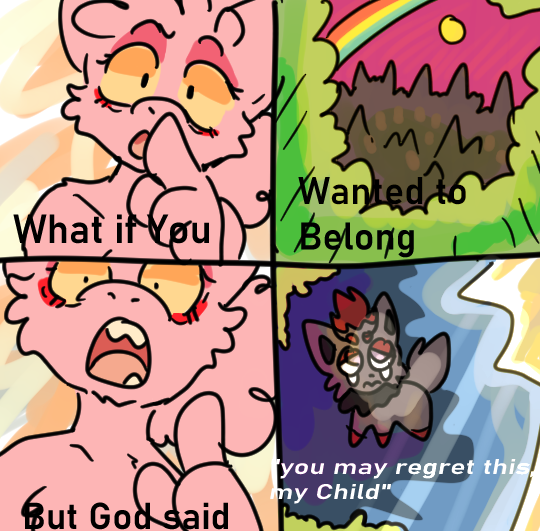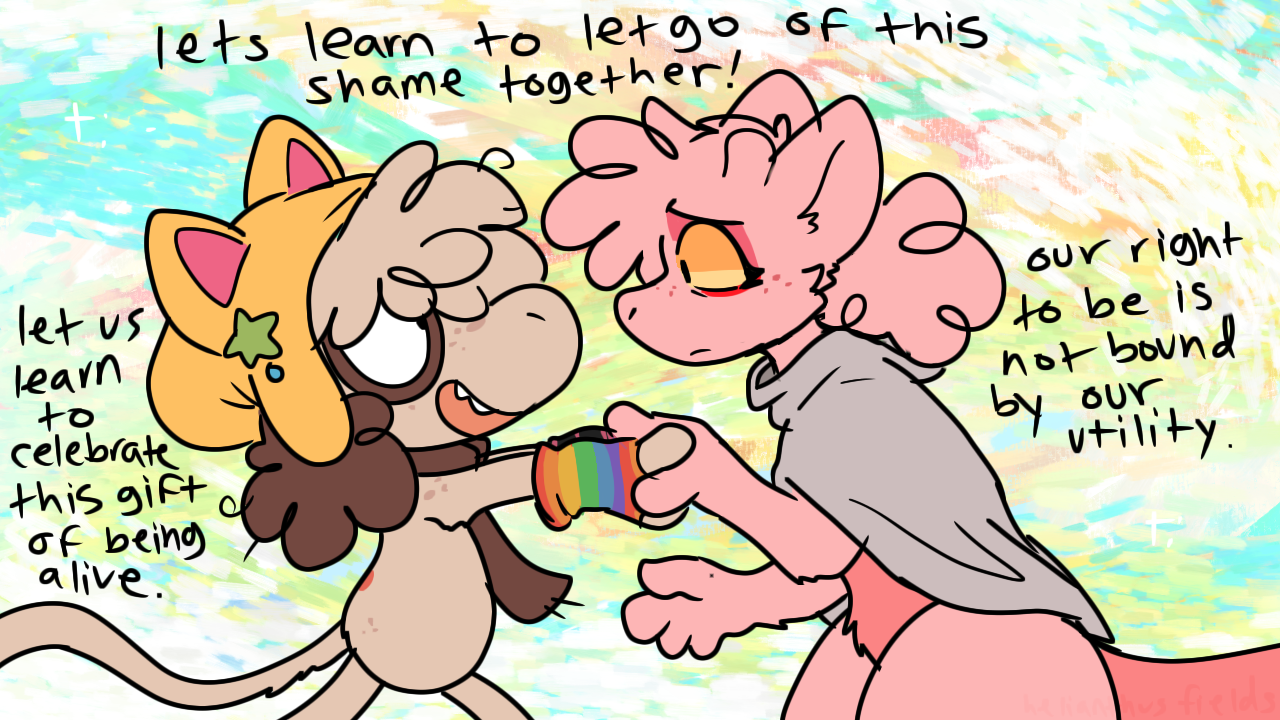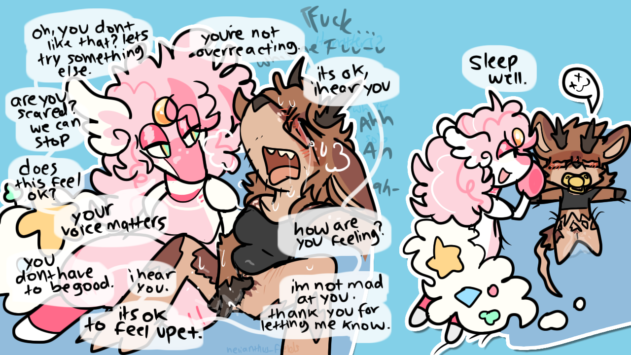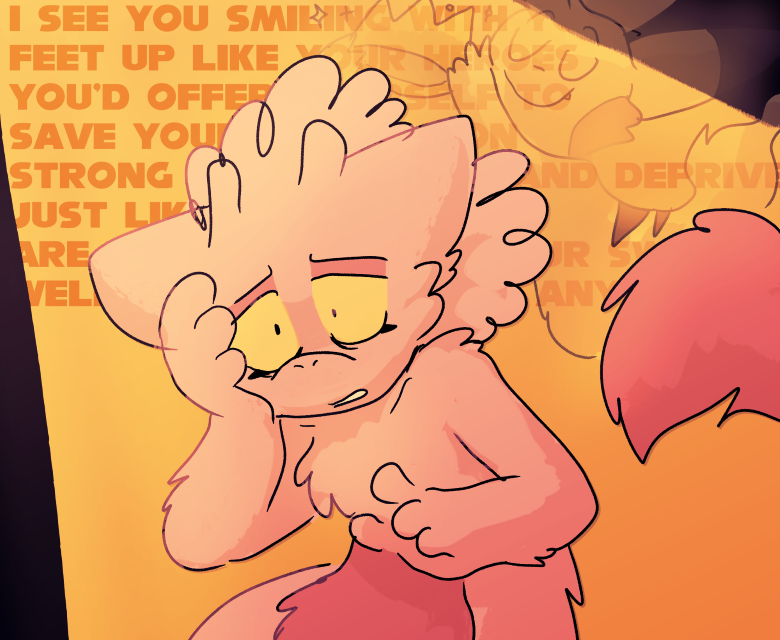 leaned alot into kidfur/babyfur art before feeling constrained as we were also rocking w nsfw and couldnt stand the santized themes or messages in the babyfur community. felt gross for not being clean enough. started going insane lol