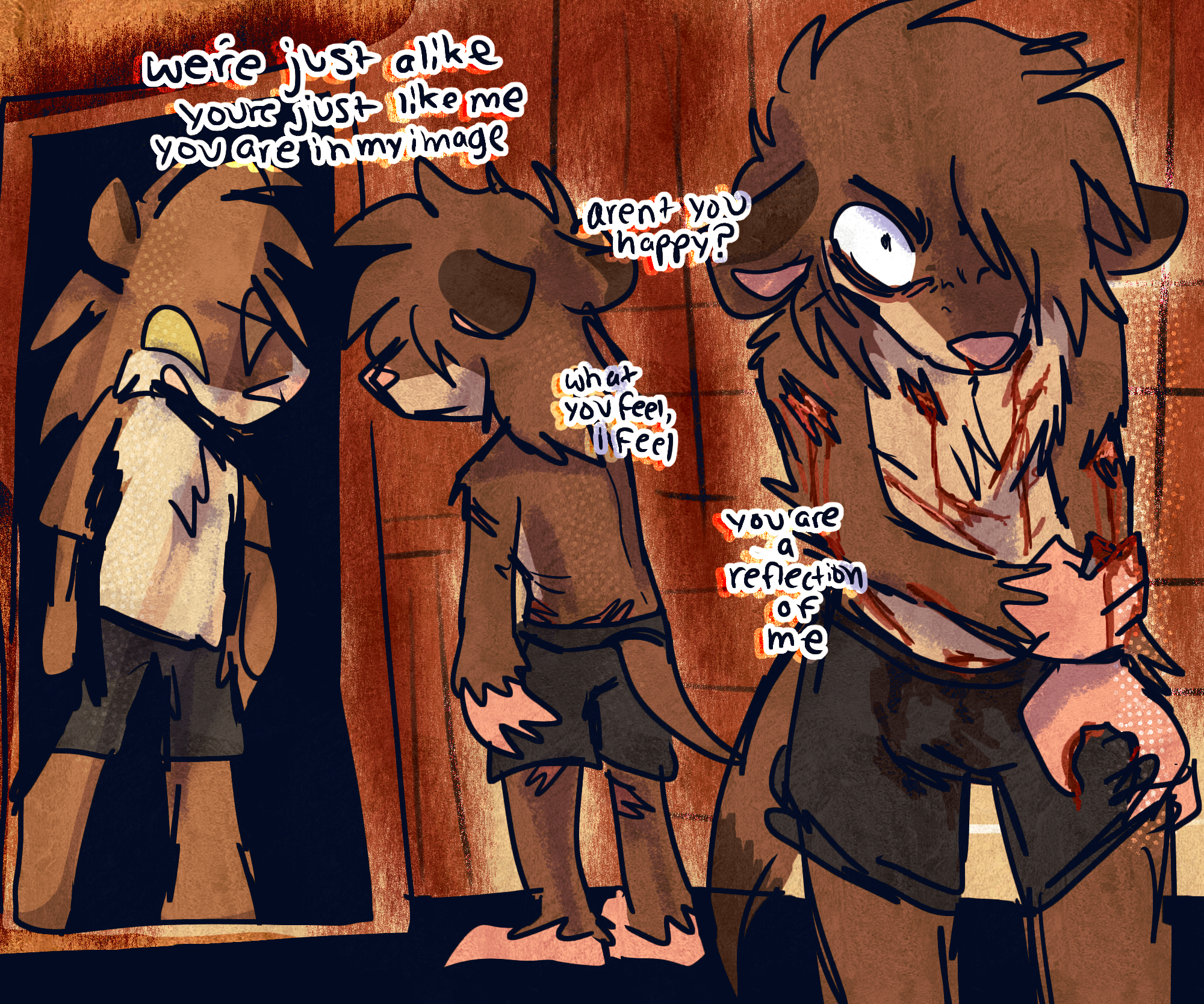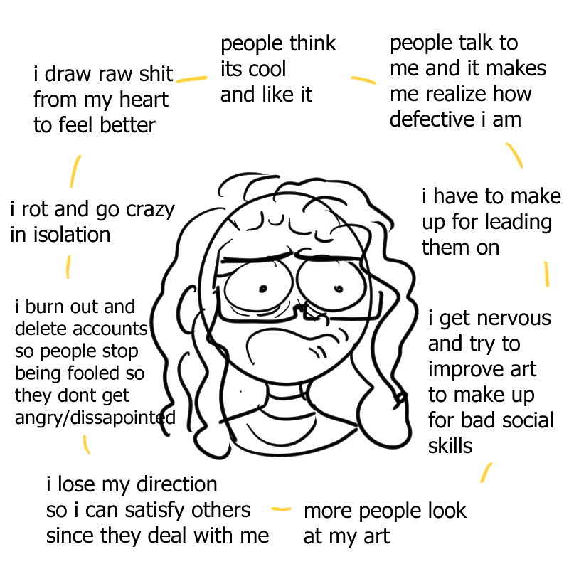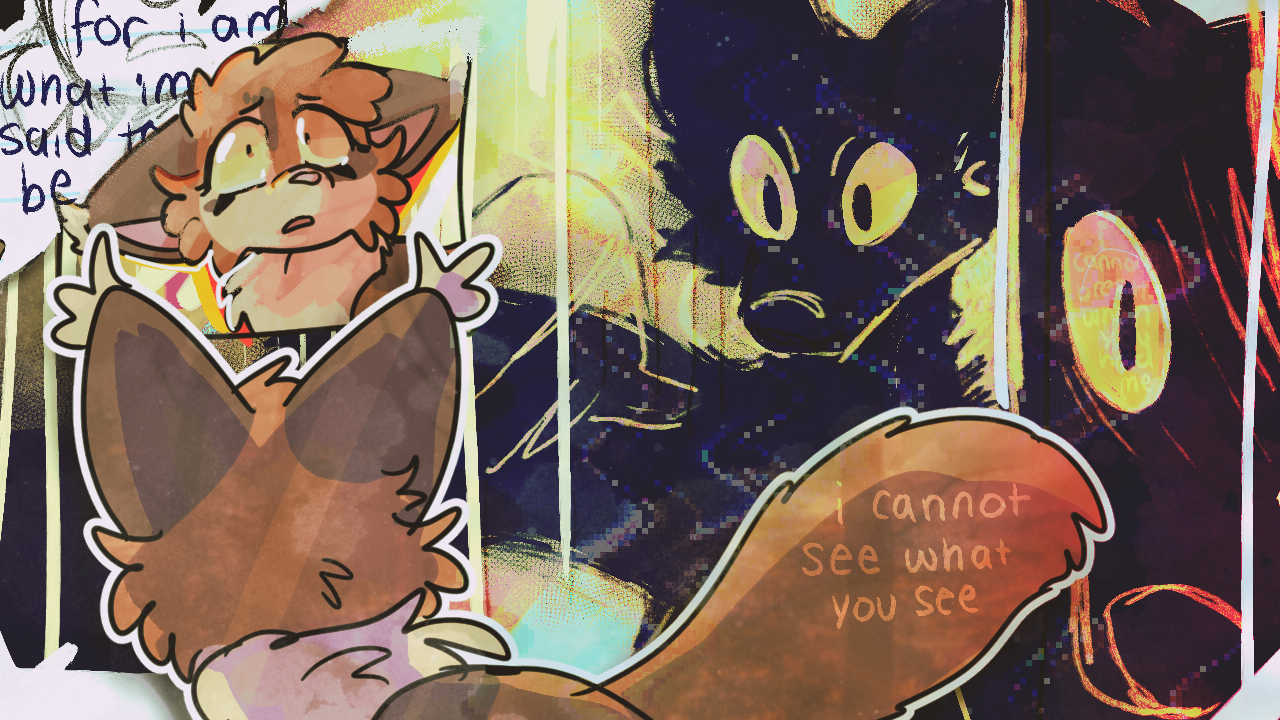 The Lines Begins to Blur really captures the chaos of the first half of the 2020s for me. every place i went to try to find a home (sfw -> sfw babyfur -> darkfic) in just didnt feel right. i felt trapped everywhere, especially due to the descend into one of our primary delusions that we are a living cancer or toxin that destroy anything near us.