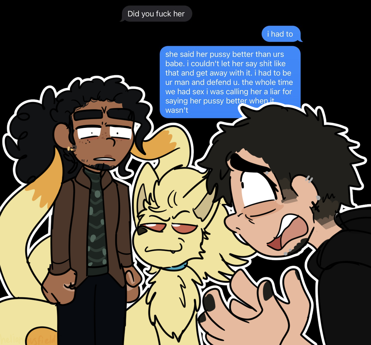 ariana took the reins / dizzy split and fused with lucas and completely wiped slate of alot and moved us back to furaffinity. finishing college segwayed into an existential crisis and well, general crisis. lucas being fused with dizzy left ida and ree to handle most of things. al was more active to help mediate with ariana and comfort everyone.