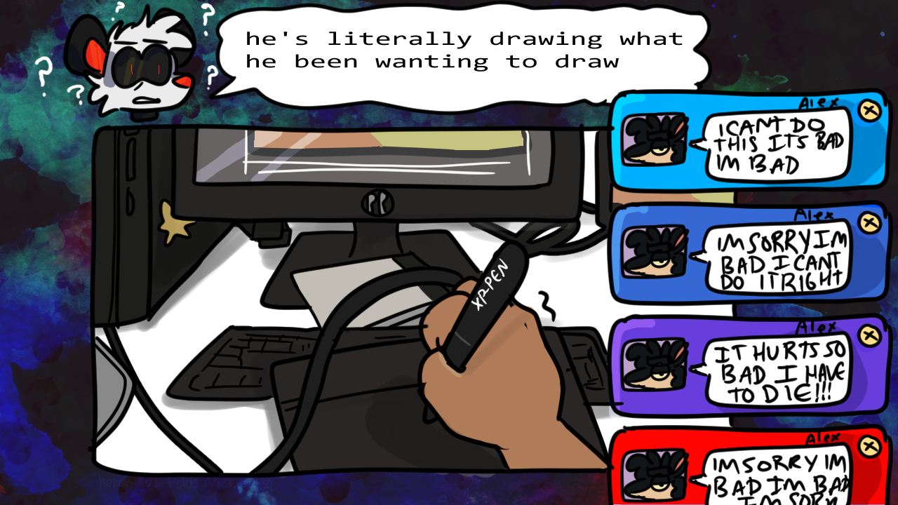 all images here are redraws of some sort of meme. we just like communicating through memes. meme references will be linked - click drawing to see meme refclick me to view newest